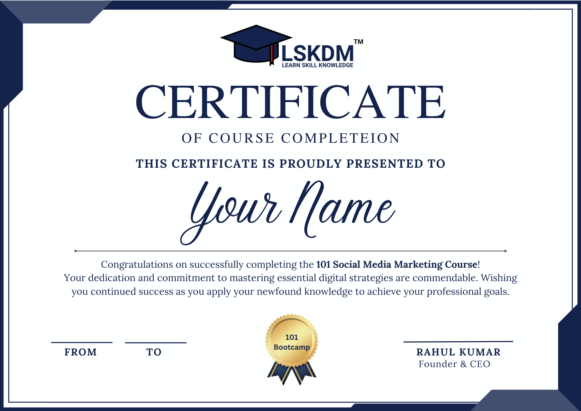 After you complete your digital marketing course, LSKDM will award you this certificate.
