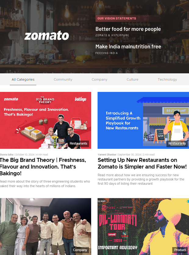 Zomato’s website is optimized for local SEO — meaning when someone searches “best pizza near me,” Zomato often ranks on top.